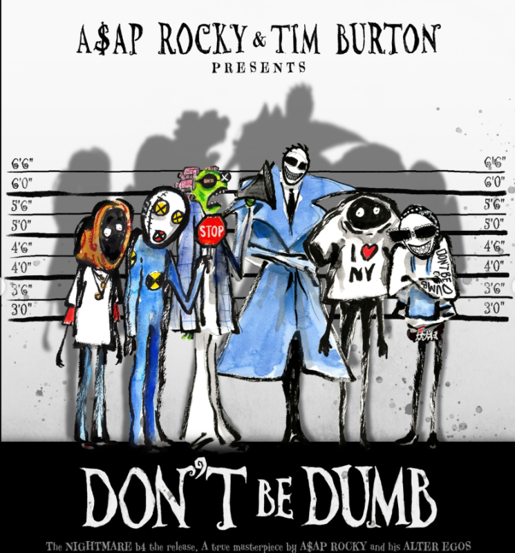 “Don’t be Dumb” is heavily story driven, detailing different versions of Rocky throughout the last few years with his six main characters, represented on the album cover designed by Tim Burton. Burton was a massive inspiration for the rapper, and had a strong hand over the visual direction of the project. Rocky’s alter egos each offer insight into a moment of his life. Chronologically, the first character is Shithead, which actually explores Rocky’s experiences with his friends as a young adult in Harlem, New York circa 2013. The next persona is Dummie, the one representing the stylistic choices from “Testing” and Rocky’s willingness to explore his creativity. We then get into Babushka Boi, the character that embodies his love for fashion design and self expression, referencing his usage of the babushka scarf at the LACMA Art and Film Gala in late 2018. He also shortly released a song and music video with this aesthetic, both which previewed the sonic identity “Don’t be Dumb” would take on.