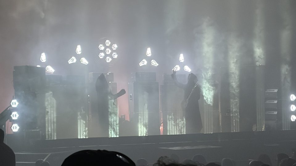 Seattle based drone metal band sunn O))) paid Iowa City’s Englert Theatre a visit on April 18th, 2026. The band, made up of Stephen O’Malley and Grey Anderson, was first formed in 1998, and carved a niche for themselves in the grunge and heavy metal music spheres by becoming one of the pioneers of the drone metal genre. Since then, the band has amassed a massive cult following by making their incredibly innovative form of experimental metal music, characterized by absurdly low tunings, deep distorted guitar chords, and a lack of clear rhythms and melodies. Though beyond anything else, they are recognized for their extremely loud, ground shaking live performances.
